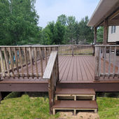 Dining area and fireplace after renovation. Rebuilt fireplace, new floor and trim.